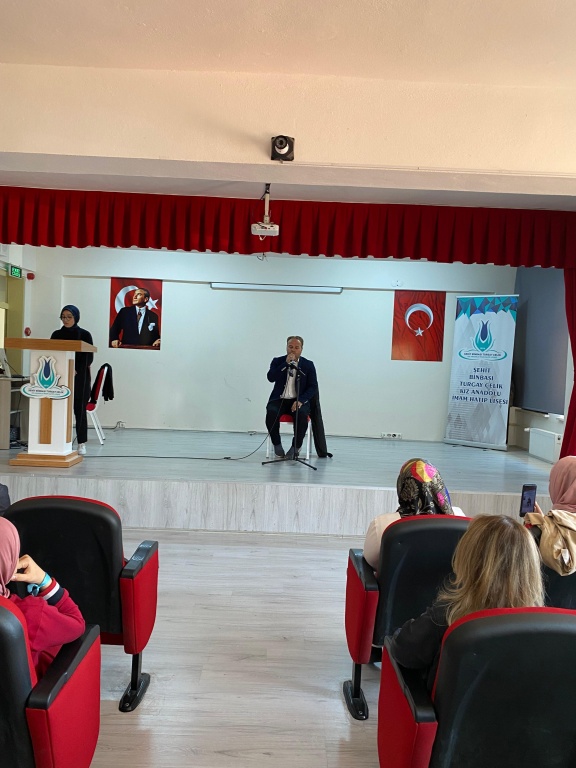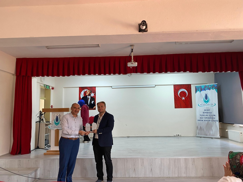 Çedes ve Vakti Kuşanmak projeleri kapsamında okulumuza davet edilen Hacı Kılıç Cami İmam Hatibi Yasin Yüksel bey Camiler ve Din Görevlileri Haftası münasebetiyle öğrencilerimizle buluştu. Değerli hocamıza teşekkür plaketini okul müdürümüz Sayın Yusuf Yürer takdim etti.